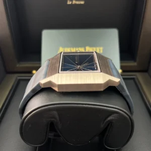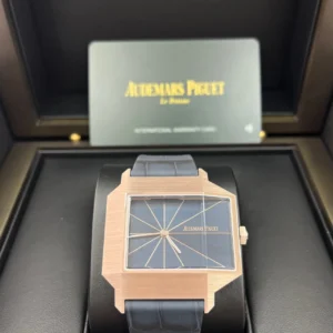 A tribute to a timepiece from 1960, this limited edition features an asymmetrical case crafted in sand gold, a new 18-carat gold alloy that comes to life in the light. It is enhanced by a parted blue dial with a unique brushing finish. 18-carat sand gold case, glareproofed sapphire crystal and caseback. Parted blue dial with parallel brush effect, sand gold hands. Blue contrasted alligator strap, 18-carat sand gold pin buckle.