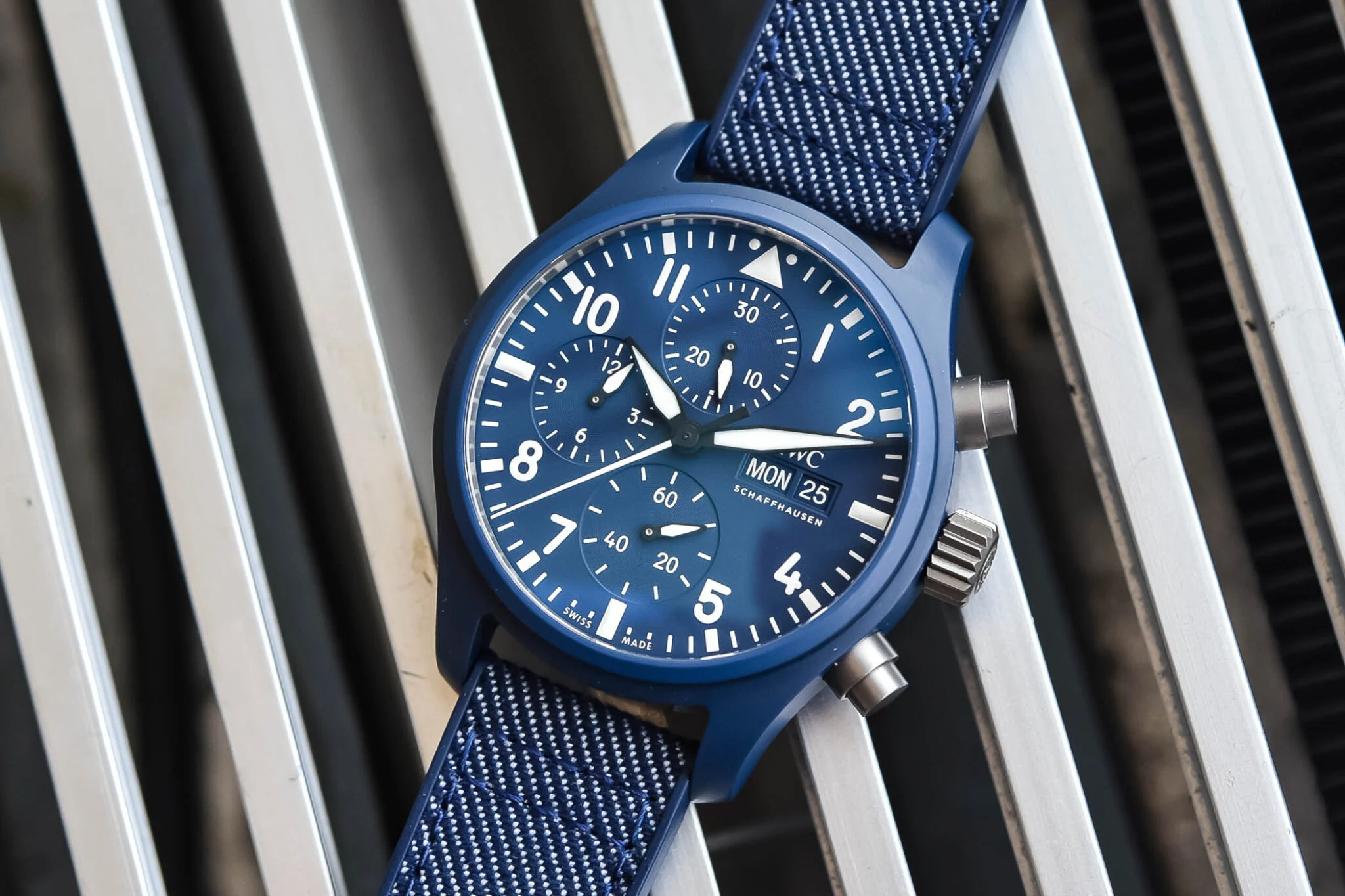 At its heart lies the IWC-manufactured 69385 calibre, a robust, reliable movement visible through a sapphire case back — a nod to both craftsmanship and transparency. The column-wheel mechanism ensures precise chronograph performance with a tactile push-button feel. With a 46-hour power reserve and 100-meter water resistance, the watch balances everyday functionality with durability.