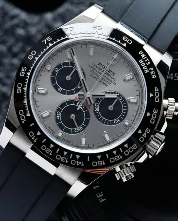 The Rolex Daytona 116500LN “Panda” is one of the most sought-after chronographs, combining 904L stainless steel with a striking white lacquer dial and black subdials.