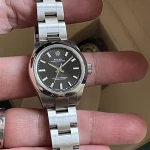 Original ROLEX OYSTER PERPETUAL 28MM 276200 BLACK BLACK DIAL STAINLESS STEEL watch, made in 2022. The watch is in a fully working order and in great appearance. This model features an original black dial with silver luminous hour indexes, signed “Rolex”, “Oyster Perpetual”, “Superlative Chronometer Officially Certified”, ” Swiss Made “. Silver luminous hours, minutes, and central second hand. The stainless steel winding crown is completely original and correctly signed with the famous “Rolex” logo.